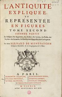 Montfaucon 1719b : B. de Montfaucon, L'Antiquité expliquée et représentée en figures, tome 2, 2: Seconde partie : La religion des Égyptiens, des Arabes, des Syriens, des Perses, des Scythes, des Germains, des Gaulois, des Espagnols, & des Carthaginois, Paris 1719.