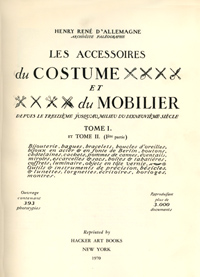 D'Allemagne 1928a : H.-R. d’Allemagne, Les accessoires du costume et du mobilier depuis le XIIIe siècle jusqu’au milieu du XIXe siècle, Paris, 1928, 3 vol.