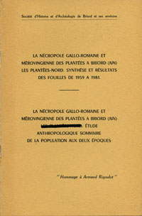 S.H.A.B.E. 1986 : Groupe de Recherches de la S.H.A.B.E., La nécropole gallo-romaine et mérovingienne des Plantées à Briord (Ain), Les Plantées-Nord. Synthèse et résultats des fouilles de 1959 à 1981. [suivi de:] La nécropole gallo-romaine et mérovingienne des Plantées à Briord (Ain). Etude anthropologique de la population aux deux époques. La Physiophile n°104, juin 1986, 51-67.