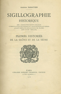 Sabatier 1912 : A. Sabatier, Sigillographie historique des administrations fiscales, communautés ouvrières et institutions diverses ayant employé des sceaux de plomb (XVe-XVIIIe siècles). Plombs historiés de la Saône et de la Seine, Paris 1912.