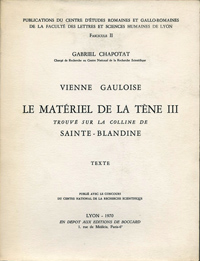 Chapotat 1970 : G. Chapotat, Vienne gauloise. Le matériel de la Tène III trouvé sur la colline de Sainte-Blandine (Publ. du CERGR, II), Lyon, 1970.