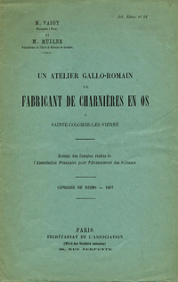 Vassy, Muller 1907 : A. Vassy, H. Müller, Un atelier gallo-romain de fabricant de charnières en os à Sainte-Colombe-lès-Vienne. Comptes-rendus de l'Assoc. Fr. pour l'Avancement des Sc., Cong. de Reims, 1907.