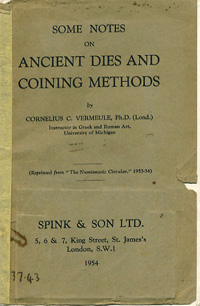 Vermeule 1953 : C.C. Vermeule, Some notes on ancient dies and coining methods. The Numismatic circular 1953-54 (réed., London 1954).