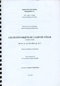 Martinez 1998 : B. Martinez, Les petits objets du Camp de César (Laudun, Gard), du Ier av. au VIe siècle ap. J.-C. (Mém. de Maîtrise inédit), Université de Montpellier III, 1998.