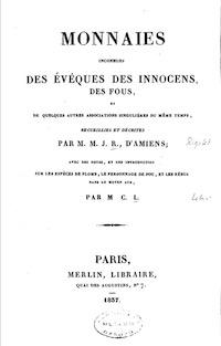 Rigollot 1837 : Marcel-Jérôme Rigollot, Monnaies inconnues des évêques des innocens, des Fous et de quelques autres associations singulières du même temps, Merlin, Paris, 1837