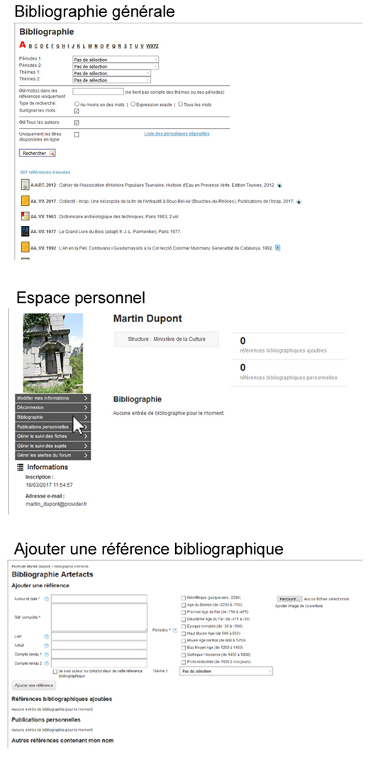 Les membres inscrits et les auteurs peuvent saisir des références bibliographiques concernant les objets archéologiques. Elles seront ajoutées à la bibliographie générale, accessible dans le menu de gauche.Avant de saisir une référence, il faut vérifier dans le menu Bibliographie que ce titre n'existe pas encore.