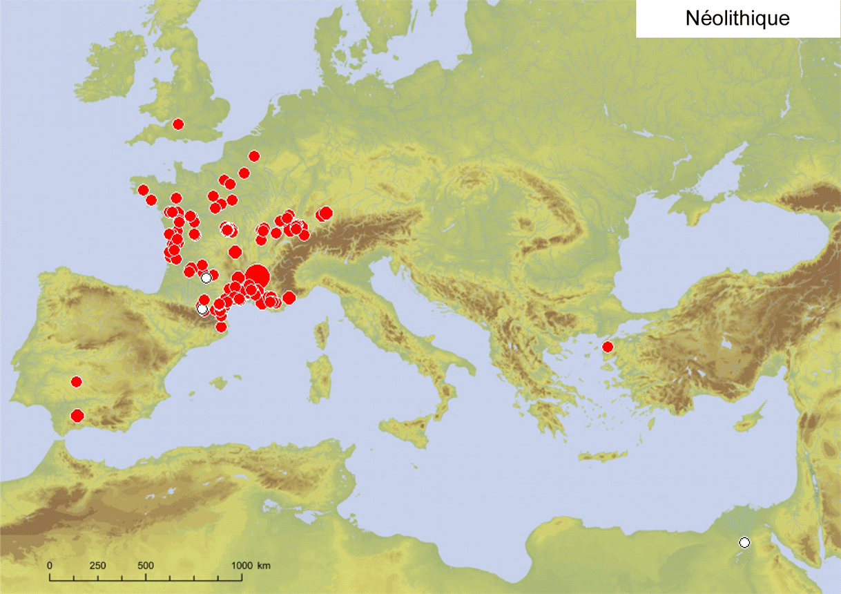 | Les cartes ci-contre montrent l'état d'avancement des inventaires pour chaque période. Naturellement, la proportion d'objets inventoriés dépend de l'investissement des chercheurs et des équipes qui travaillent sur une période donnée. On voit que l'effort est donc plus avancé pour le deuxième Age du fer et l'époque romaine que pour les autres périodes. Pour devenir auteur d'Artefacts, envoyez votre projet scientifique à : artefacts[at]mom.fr © Fond de carte H. Bohbot |  |